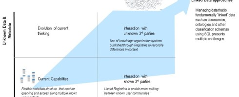 In general, one wants to anchor these discussions in some defined criteria that can help frame the discussion within the context of business drivers. In the following figure, the goal is to show that as data sources and consumers of your data expand to include increasingly complex data structures and “contexts,” there is a need to evolve approaches beyond the traditional relational database (RDBMS) approaches. Different organizations will have different criteria. I provide this as a rubric that has worked before – you will need to create an approach that works for your organization or client.